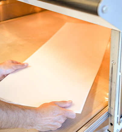 Depending on oven type, always use a clean PTFE-coating; talcum or aggressive cleaning aids (e.g. acetone) will damage the material surface. The dryer the model, the less material shrinkage is detectable.